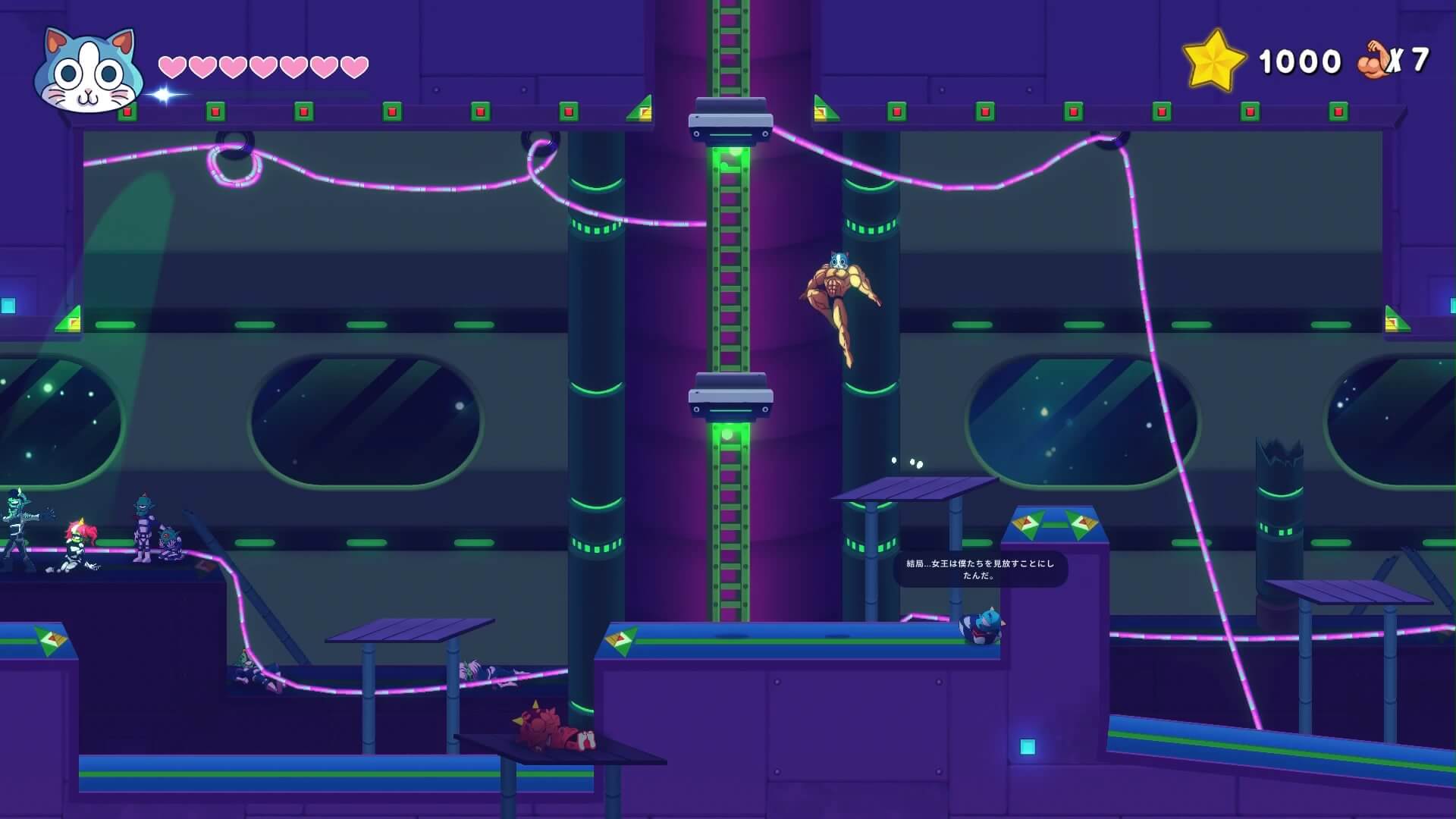 3つのリアクターを壊したら「1階と2階の間にある通路」 が通行可能になる。スローモーション区間の後、 2機のUFOを踏み、穴を超えてすぐが鬼門で、着地後の「銃に被弾⇒後退落下」のデスコンボに注意!
